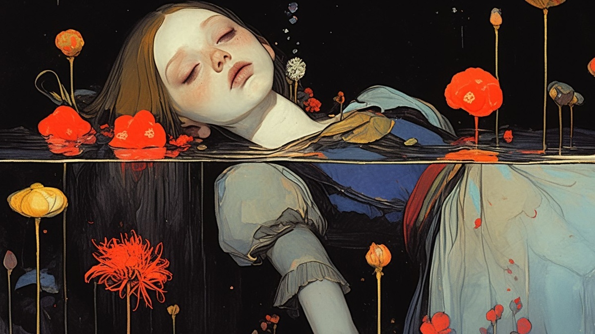 Создано на основе запроса: lycoris flowerpunk forced perspective burlesque Fellini Satyricon 1969 , Ophelia floating underwater and dressed in flowers and lycoris, John Everett Millais Ophelia Painting, dressed in flowers and lycoris, in the artgerm style, loose line work, luxurious and detailed, cottagecore, inspired by nature and lycoris, by Zdzisław Beksiński and klimt and hans bellmer and odd nerdrum, photographed, photogenic, authentic, cinematic, dressed in flowers and lycoris, luxurious and detailed, detailed facial features, cottagecore, nature-inspired, --- Автоперевод: Lycoris FlowerPunk насильственная перспектива бурлеск -сатирикона 1969 года, Офелия плавающая под водой и одета в цветы и ликорис, живопись Джона Эверетта Милле Офелия, одетая в цветы и ликорис, в стиле арджер, свободных линии, роскошный и детальный, Коттейк, Изорий и Лайкрис, и Лайкрис, и Лайкарис, и лайказ. Хорошо вышло? 🤔 https://dzen.ru/id/65c0c65c86e4f837c27b24d7 #ИИ #AI #нейросеть #midjourney #art