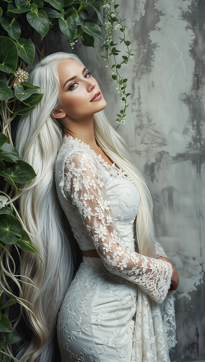 Магия белоснежных волос и кружевных нарядов из нейросети Плейграунд