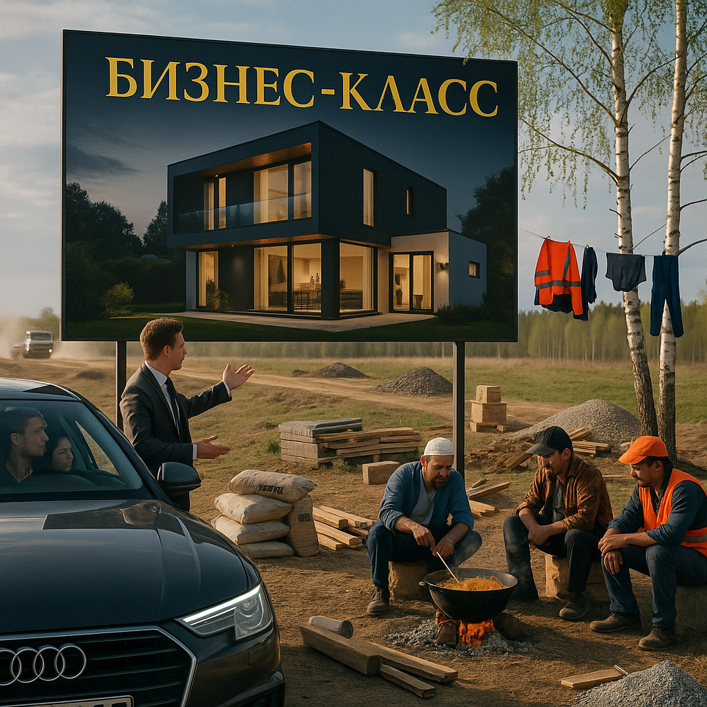 Недавно нас с коллегами пригласили на «консультацию». Застройщик планирует построить новый коттеджный посёлок бизнес-класса. Земля найдена, мечты расписаны, концепция вдохновляет. Говорят: — Хотим продавать по 500 тысяч за сотку, но с подрядом. То есть ты покупаешь участок, и тебе по договору строят дом по проекту мечты. Ну, вы поняли — это не просто «купи землю», это «вот здесь будет твой личный рай». На словах. Выезжаем. Смотрим. 40 минут от города. Правда, не от центра — от КАДа. Локация — бизнес-класс? Ну… может, здесь озеро? Нет. Может, сосны? Нет. Первая линия? Угадали, тоже нет. Берёзки, осинки и поле. Просто поле. На старте продаж — 500 за сотку. И это дешёвые участки. Дороже тоже есть — подороже концепция. Из реализованного продукта: — Отсыпали дорогу щебнем. — Нарисовали, где будет СПА. — Расставили флажки под детскую площадку и коворкинг. То есть сделали то, что делают все. Абсолютно. Последние 5 лет Ленобласть поёт одну и ту же песню: «Здесь у нас будет С