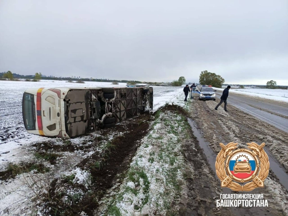 В Башкирии автобус "Большеустьикинское - Уфа" опрокинулся в кювет