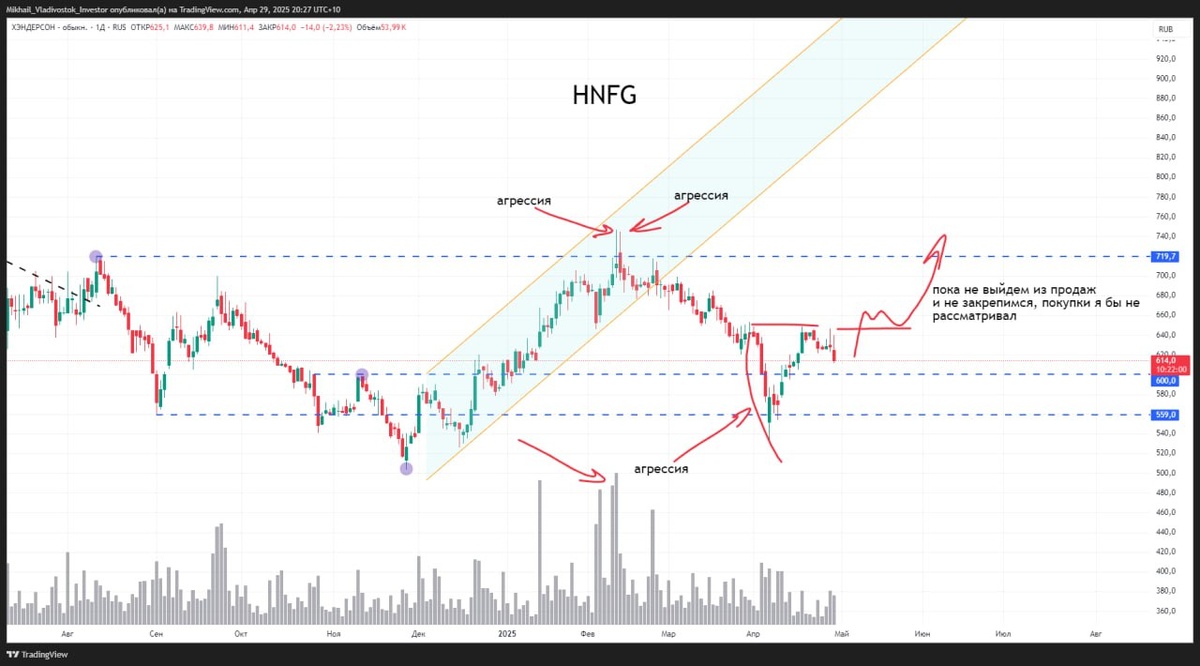 😁 #HNFG #отчетность $HNFG Выручка HENDERSON за 3 месяца 2025 года выросла к аналогичному периоду 2024 года на 18,6%. Рост к 3 месяцам 2023 года превысил 60,2%. отчет По графику: В зоне агрессивных продаж. Пока не выйдем выше, покупки рассматривать нельзя