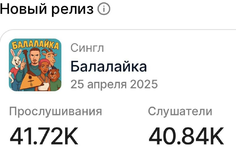 Кстати говоря ваши прослушивания помогают нам расти, смотрите как за пару дней мы дошли до 40К+ 🚀 Нужно всего лишь послушать до конца и поставить царский лайк https://music.yandex.ru/album/36262798/track/138290579?utm_medium=copy_link