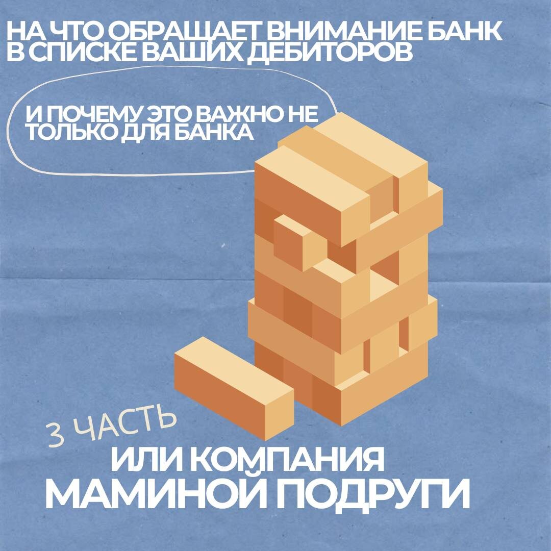 Что банк видит в вашей клиентской базе — и почему это важно(или компания маминой подруги часть 3) Первые две части можно почитать тут 🔗ЧАСТЬ_1 / 🔗ЧАСТЬ_2 Решил продолжить рассказ о том, как стать в глазах банка компанией мечты. Поверьте, самой компании это тоже пойдет на пользу. Кто такие дебиторы? ⬇️ Это те, кто покупают у вас товары, услуги или заказывают работы. Ваши клиенты, проще говоря. ➡️Теперь давайте разберемся, что может пойти не так, если вы много лет работаете с одним-двумя жирненькими, хорошенькими и любимыми заказчиками — и, казалось бы, всё прекрасно? А вот что: практика показывает — если что-то может пойти не так, оно обязательно пойдет не так. И если один из этих ключевых заказчиков внезапно отвалится, ваша компания может покатиться под откос. За 10 лет я видел это многократно. Почему важна диверсификация Диверсификация — это распределение рисков. У всех банков свои методики оценки надежности клиента, но есть один общий критерий: если 3–5 крупнейших заказчиков