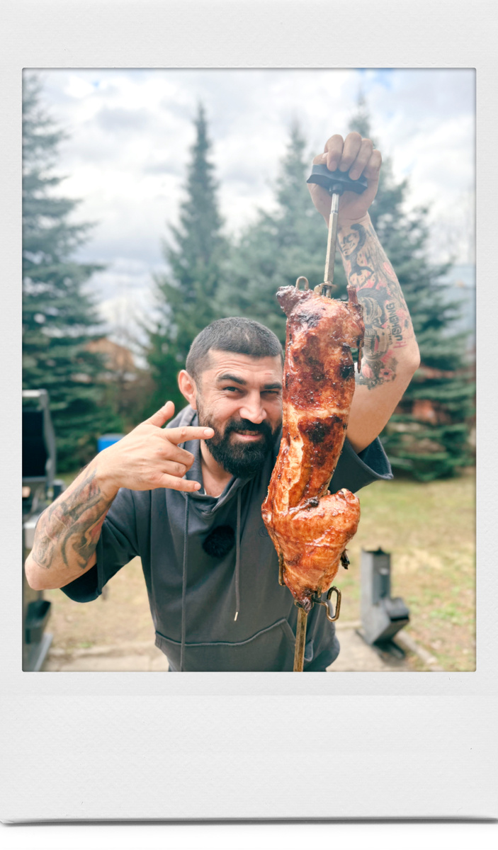 Готовый кролик на вертеле Фаршированный кролик на вертеле- настоящее праздничное блюдо! Ингредиенты: * Целый кролик - 3 кг * Шампиньоны - 400 г * Болгарский перец - 2 шт * Лук репчатый - 2 шт * Чеснок - 5 зубчиков * Сметана - 200 мл * Сливочное масло - 100 * Соль, перец, специи по вкусу Приготовление: Кролика тщательно моем, обсушиваем бумажным полотенцем. Делаем маринад на выбор : Для начинки: * Обжариваем грибы до золотистого цвета * Добавляем нарезанный лук и чеснок * Вливаем сливки/ сметану, кладем кусочек сливочного масла * Тушим 5-10 минут, добавляем специи Начиняем кролика приготовленной смесью, зашиваем отверстие. Насаживаем на вертел Запекаем при 180°C около 30-40 минут Далее открываем гриль, включаем заднюю панель для образования корочки и смазываем для глазирования смесью соевого соуса с медом. Полезные советы: * Перед запеканием обязательно замаринуйте мясо на 2-3 часа * Не пересушивайте - проверяйте готовность проколом ножа * Для сочности можно добавить в начинк