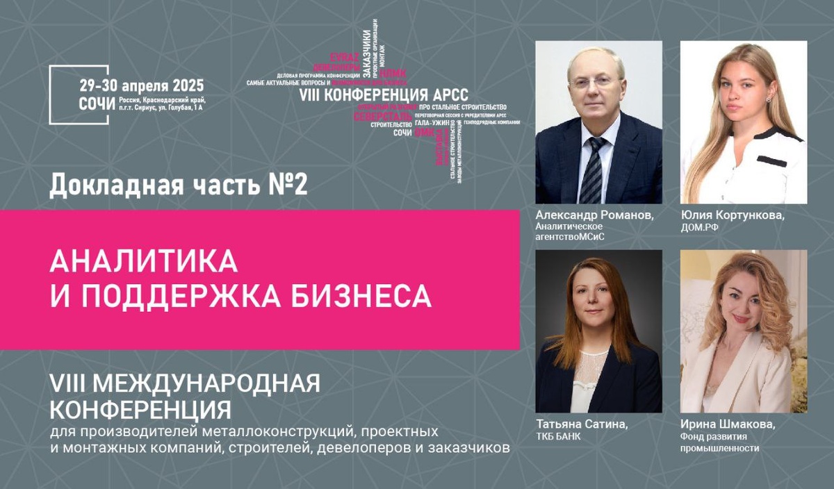 #VIIIконференцияАРСС2025 🌸Докладная часть №2. Аналитика и поддержка бизнеса 📌Второй блок конференции АРСС стал навигатором по возможностям финансовой поддержки, ориентированной на компании строительной отрасли. Участники обсудили инструменты развития, которые особенно актуальны в текущей макроэкономической обстановке. 🗣️Александр Романов, ИИС "Металлоснабжение и сбыт" «Мировой рынок стали проходит через глубокую перестройку. Внутренний спрос в России становится решающим фактором стабильности». По данным РСПМ, цены на стальную продукцию после скачка 2021–2022 годов вернулись к доковидным уровням. В России наблюдается спад внутреннего потребления стали, а металлургам предстоит адаптироваться к новым реалиям: высокий уровень ставок, сокращение девелоперской активности и рост внутренних рисков. 🗣Юлия Кортункова, Банк ДОМ.РФ «Эскроу в ИЖС обеспечивает защиту дольщика и одновременно создает новую систему доверия в частном домостроении». Банк ДОМ.РФ представил продукт «ИЖС-Подряд» —