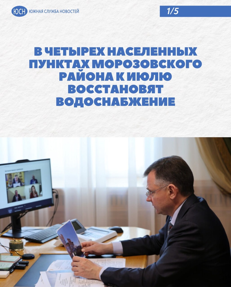 🔹 В четырех населенных пунктах Морозовского района к июлю восстановят водоснабжение Жители Морозовского района во время интерактивного приема обратились к главе донского региона Юрию Слюсарю. Оказалось, что в четырех населенных пунктах артезианские скважины вышли из строя. Они обеспечивают водой около тысячи жителей. Из-за этого введен режим ЧС. По информации областного министерства ЖКХ, для строительства новых скважин в хуторе Беляеве и поселке Комсомольском необходимо около 10 млн рублей. 🌐 Южная служба новостей