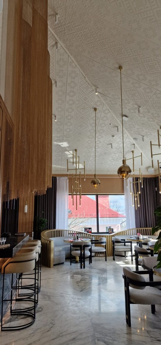 Утро нового дня! Солнце! Великий Новгород! И мы в Acron Hotel Veliky Novgorod, участник цепочки Radisson Individuals, спешим на наш первый завтрак в ресторане Проун. К креветкам, название ресторана не имеет никакого отношения, это неологизм, придуманный по заданию Малевича конструктивистом Эль Лисицким более 100 лет назад, репродукции которого можно увидеть в ресторане. Хотелось бы отдельно сказать об интерьере. Свет, простор, очень деликатный дизайн с вплетенными в канву пространства элементами русских промыслов. Отдельный респект владельцам, с тонким чувством вкуса, благодаря которому появился такой прекрасный отель. Побольше бы такой красоты! Итак, завтрак (2500 руб для гостей с улицы, сервируют с 7.00 до 11.00). Небольшой буфет, где качество преобладает над количеством. Всего по чуть-чуть, но все свежее и вкусное, и нет ничего лишнего. #акрон