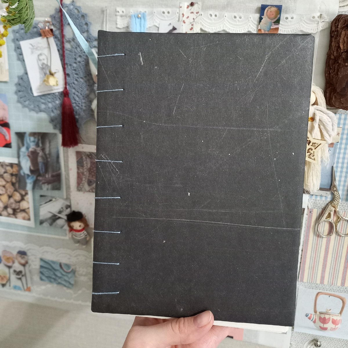 Я увлеклась ещё одним видом рукоделия... делаю блокноты своими руками. Пока для личного пользования, так как техника ещё не отточена, но возможно в будущем, на ярмарках и маркетах, вы увидите на моём столе блокноты и скетчбуки ручной работы. Потому что изготавливать их оказалось огромным удовольствием, и вряд ли я смогу остановиться...)) У этого чёрного красавца 192 страницы, он сделан из неотбеленной офисной бумаги, поэтому подходит исключительно для карандашных набросков, и текстов. Внутри нет разлиновки, так как я собираюсь использовать его для коллажей, рисунков и сочинительства. Обложку я вырезала из обычного картона (в версиях, которые пойдут на продажу, я буду использовать художественный картон, так как он более плотный и ровный), обклеила её бумажной распечаткой (нашла на пинтересте имитацию старой чёрной школьной доски). Так моя книга-блокнот стала символом новых знаний😊 Я хочу чтобы этот скетчбук был монохромным, как снаружи, так и внутри. Поэтому обзавелась простыми каранда