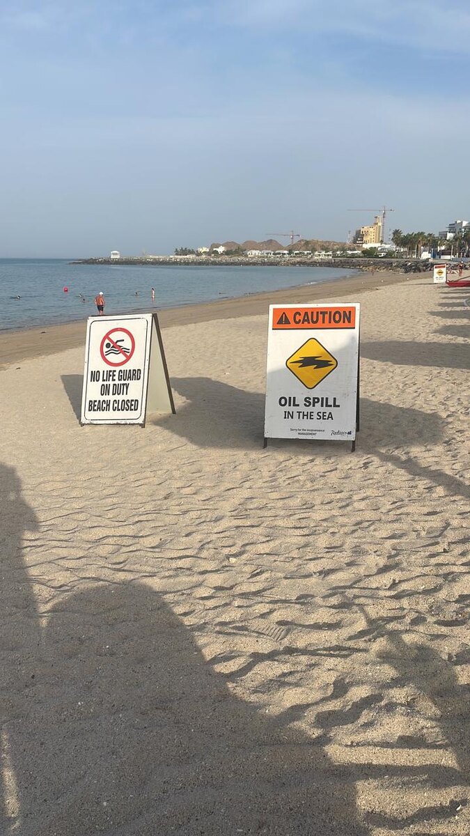 Нам пишут. «Вот такие таблички сегодня обнаружили на пляже Radisson Blu Hotel в Дубае. "Разлив нефти в море. Спасатели не дежурят. Пляж закрыт". Говорят, для посещения со вчерашнего дня все закрыли. Причин не называют. На берегу сотрудники убирают. А что там в море - неизвестно. Но запах, кстати, ужасный». @tourdom