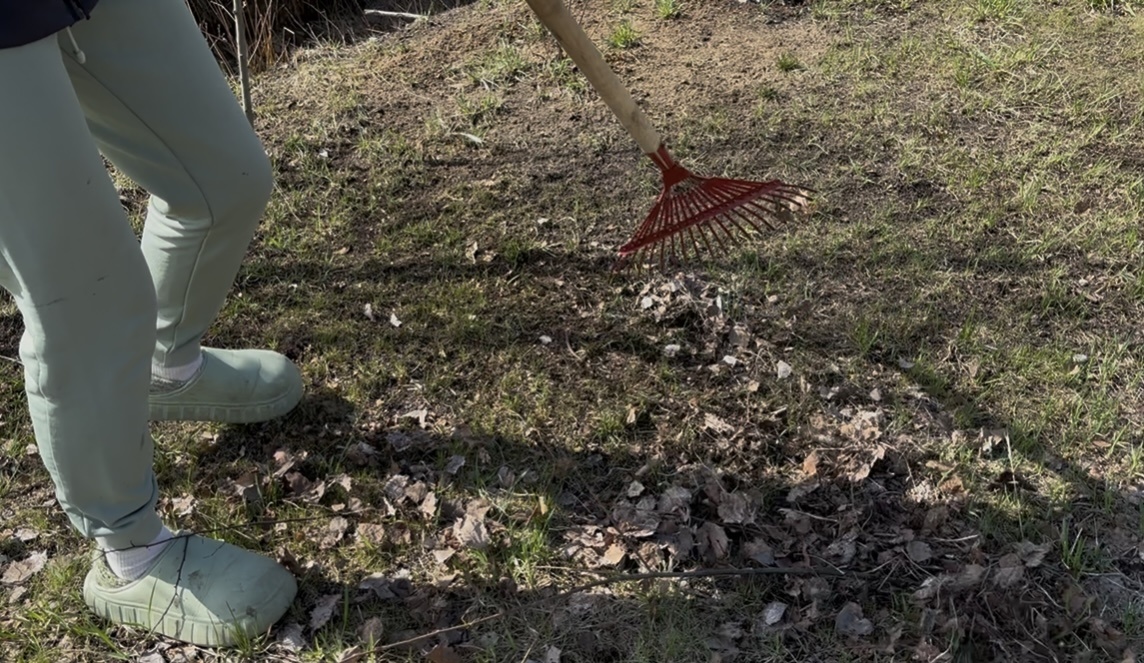 Первым делом почистила газон, газон это конечно слишком сильно сказано, пока это конечно плешивый кусочек 😅