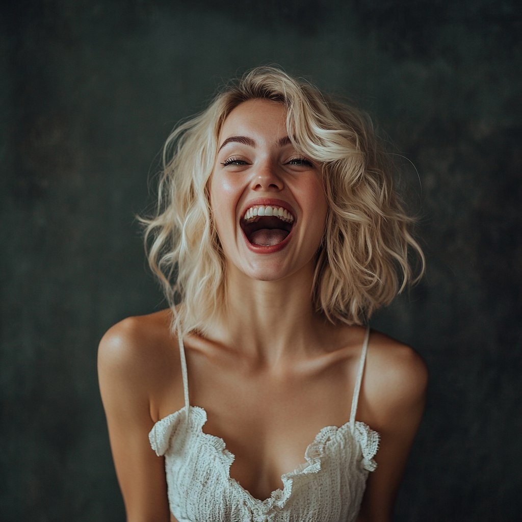 Создано на основе запроса: beautiful blonde woman smiling and shouting