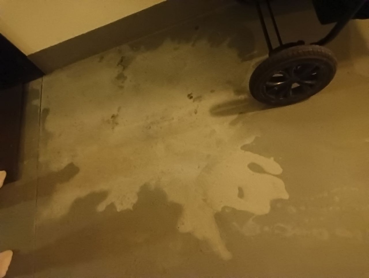 В первой секции 21 дома ЖК "Живи в Рыбацком" после уборщицы весь пол остается в таких пятнах