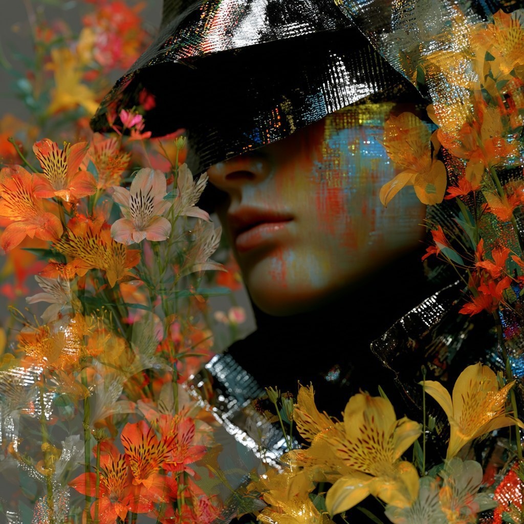 Создано на основе запроса: portrait of a emotionless faceless model in a lycoris flowers composed face, headpiece and outfit, demonstrating the new editorial design of fashion show for summer in year 2330; vibrant glowing, metal shimmering solid colors, quality and glamorous stock photos, extremely detailed image shot with canon, shutter speed 1/2000 seconds, ISO 100, studio light in azure bg --- Автоперевод: Портрет беспристрастной модели в цветах Lycoris, составленных лица, головной убор и наряда, демонстрируя новый редакционный дизайн Fashion Show для лета в 2330 году; Хорошо вышло? 🤔 https://dzen.ru/id/65c0c65c86e4f837c27b24d7 #ИИ #AI #нейросеть #midjourney #art