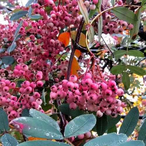 подборка от подгруппы: Кажется, миниатюрное рябиновое деревце с выразительными плодами попало к нам из сказки про кукольную принцессу, живущую в игрушечном замке с садиком? Вовсе нет. Оно настоящее. Точная копия с силуэтом обычной рябины, только уменьшенная. Яркие, но не кричащие, матовые, будто припорошенные невидимой пудрой, ягоды выглядят фантастически! Однако необычную окраску они постепенно приобретают только к моменту полной зрелости. Масса ягод составляет 2,5 - 3 г. Во вкусе спелых плодов Пинк чувствуются терпкие кисло-сладкие брусничные нотки. Из них получаются великолепные конфеты, повидло, варенье и, конечно, ликеры и настойки. Среднерослый среднеспелый сорт. Морозостойкость до -45 °С. В Гарденмарт все саженцы проходят многоступенчатый контроль качества.
