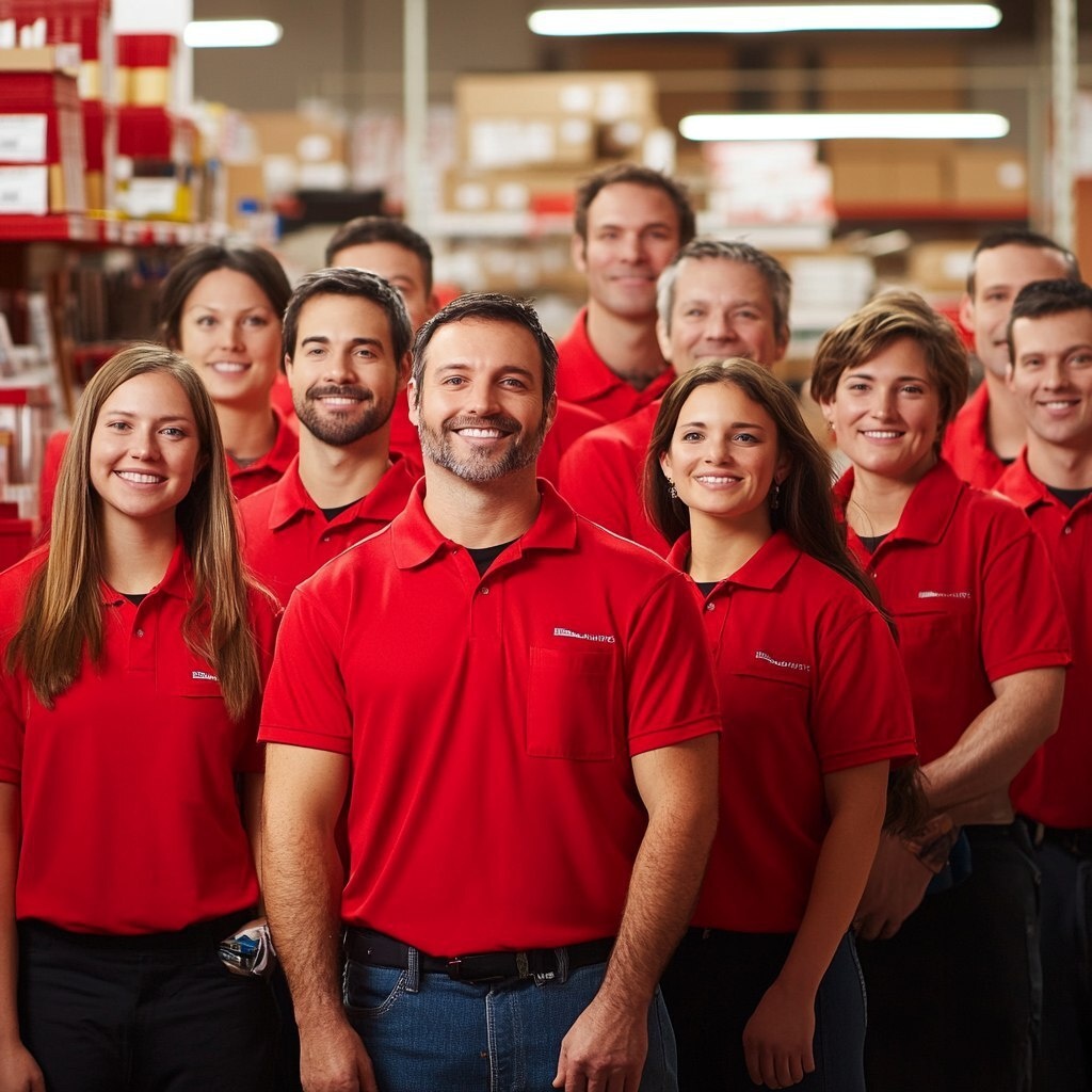 Создано на основе запроса: group of hardware store employees wearing red shirts