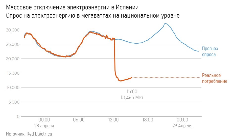Кто виноват в обесточивании юга Европы? Вчера в Испании и Португалии произошло масштабное отключение электричества (в том числе связи, светофоров и т.д.) на 10+ часов. На пару часов также зацепило часть Франции, Италии, Бельгии и Андорры. Спустя сутки правительства стран так и не смогли внятно назвать причины случившегося. Ситуация напоминает перегоревшую лампочку в советской гирлянде — не горит одна, не горит вся гирлянда. Среди популярных версий — редкое атмосферное явление из-за резких колебаний температуры в отдельных районах Испании; проблемы с синхронизацией (например, из-за кибератак) между испанскими и португальскими электросетями. Обе версии большинство источников отрицают. Ну хоть не НЛО. Испания и Португалия активно сокращают использование угольных и атомных электростанций, делая ставку на зелёную энергию (по разным данным, от 43% до 100%): ветрогенераторы и солнечные батареи, которые менее устойчивы к нагрузкам. То есть пример Германии, столкнувшейся с проблемами посл