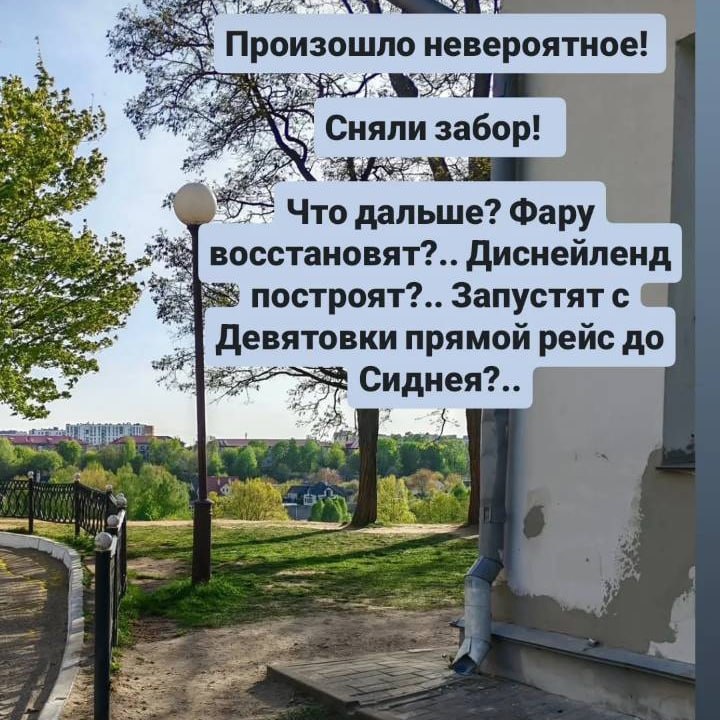 💥 Свет ужо не будзе ранейшым: у Гродне прыбралі плот ля «селфі-пляцоўкі» Новага замка «Народная» пляцоўка, што справа ад уваходнай брамы на тэрыторыю Новага замка, цяпер адкрыта. Раней каб патрапіць туды, трэба было пералазіць праз агароджу — нармальнага праходу не было. Гэта месца асабліва папулярнае сярод гродзенцаў і нават вытаптанае: сюды прыходзяць паглядзець на заход сонца, пасядзець пад дрэвамі з кавай і зрабіць здымкі на фоне Старога замка. Цяпер перашкод няма. Хто ініцыяваў прыбіранне плоту — невядома. Але падзея настройвае на мары: можа, хутка адновяць Фару Вітаўта, знойдуць крыж Еўфрасініі Полацкай, адкрыюць памежны пераход «Бераставіца» ці нават пусцяць цягнік Гродна — Беласток? Хоць апошнія два варыянты ўжо з разраду навуковай фантастыкі.