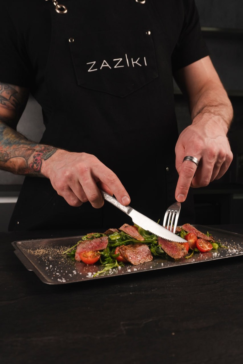 Ингредиенты: — Говядина (вырезка); — Руккола/микс салатов; — Помидоры черри; — Оливковое мало; — Бальзамический уксус; — Лимон; — Горчица; — Соль, перец, прованские травы — по вкусу. 🔪 Приготовление Ростбифа: 1. Мясо промокнуть салфеткой, обильно посолить, поперчить, обмазать горчицей; 2. Обжарить на сковороде ZAZIKI со всех сторон до корочки (2-3 мин/сторона); 3. Завернуть в фольгу, дать «отдохнуть» 10 минут → нарезать тонкими ломтиками. Заправка: 1. Добавить оливковое мало, перец, специи, бальзамический уксус, соль, цедра лимона; 2. Блендерить. 🥗 Сборка салата: 1. На тарелку выложить листья салата; 2. Добавить дольки черри и мясо; 3. Полить заправкой. Делитесь фото ваших салатов и отправляйте в комментарии! #zaziki