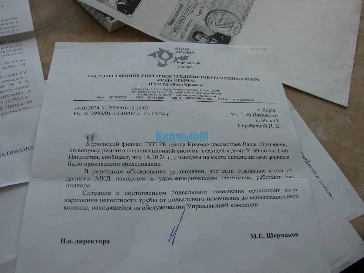 Подвал МКД в Керчи по 1-ой Пятилетки, 60 постоянно топит нечистотами В КерчьФМ обратилась жительница первого этажа дома № 60 по улице 1-ой Пятилетки. Женщине 73 года, ограниченные физические возможности связаны с заболеванием опорно-двигательного аппарата. По этой причине обивать пороги инстанций она не в состоянии. Не может и писать обращения он-лайн... А проблема в том, что на протяжении ряда лет подвал под ее квартирой топит нечистотами... подробнее Подписывайся на КерчьФМ.РФ @kerchfm