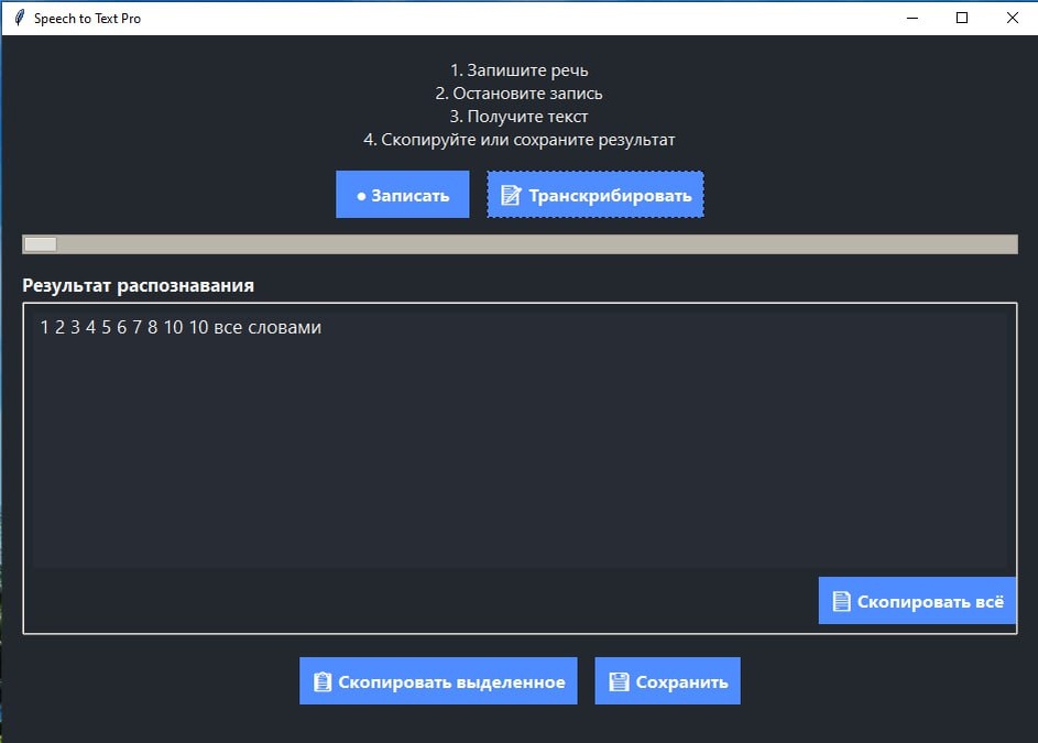 🎙 Сделал свой мини-инструмент для голосовых заметок и транскрибации — просто, без лишней возни Хотел давно упростить себе жизнь: ✅ надиктовывать промпты голосом ✅ быстро превращать речь в текст ✅ не мучиться с установкой Whisper через Python 🛠 В итоге собрал небольшую программу, с нуля, с помощью VS Code c поддержкой ИИ-агентов, больше всего зашлел агент Copilot — очень много дается токенов для работы, Cline тоже хорош, но ограничен... Это уже можно юзать как агент для диктовки промптов, текстов и вопросов, не напрягаясь. ⚙️ Что умеет программа: — Нажал кнопку — начал диктовать — После записи — сразу текст в окошке, без дополнительных конвертаций — Можно отредактировать, скопировать или дописать вручную — Всё происходит локально, без установки сторонних библиотек — Интерфейс максимально простой 📦 Я сделал уже готовый exe-файл, не требующий установки Python или зависимостей. Если не доверяете exe — прикладываю открытый код на Python. Можно закинуть его в ChatGPT и посмотреть, к