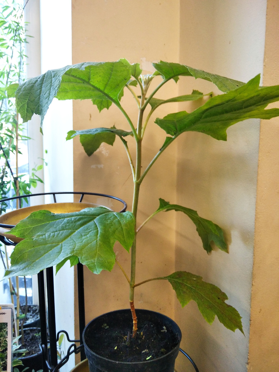 Недавно в комментариях прочла: "Зачем москвичи заказывают растения в интернете? Пришлют не пойми что, ещё и за пересылку платить! Вместо того, чтобы приехать на ш. Энтузиастов в магазин "Флос", рассмотреть растения хорошенько и выбрать самое лучшее". Ну вот, я живу в Москве, а о магазине этом никогда не слышала, как не стыдно... Поехала на разведку. Да, магазин интересный, много всего. Вот это растение знаете? Гортензия дуболистная. Есть и цветущий экземпляр. Рододендронов много, клематисов... Да всего много, глаза разбегаются. Я-то на самом деле за прострелами поехала и еле успела - их, оказывается, разбирают моментально. Магазин открылся в 9, так к половине десятого осталось только штучки три лиловых. Я взяла один. Какая-то женщина всё причитала: "Где же красный прострел, был же красный!" Был, да сплыл... Я еще мелкозубчатую белую примулу купила в подружки моим фиолетовым, пару георгин и традесканцию. Голубая и белая у меня есть, а розовой не было. Цены? Мне показалось, чт