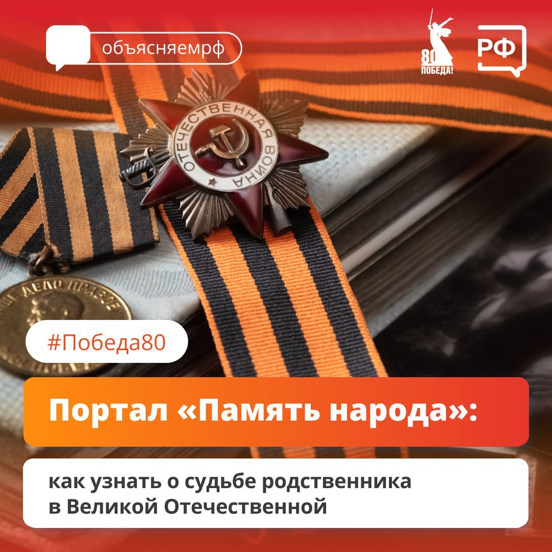✨ Хотите узнать о своих дедушках и бабушках, которые сражались в ВОВ 🌐На сайте «Память народа» https://m.pamyat-naroda.ru/ собрано более 109 млн страниц из Центрального архива Минобороны, военкоматов и музеев. Для поиска: 1️⃣введите в поисковую строку на главной странице все известные данные: полные Ф. И. О., место рождения и призыва, дату увольнения или смерти, награды; 2️⃣нажмите «Найти». Портал соберёт все документы, связанные с человеком, которого вы ищете; 3️⃣если результатов слишком много, уточните детали с помощью расширенных фильтров. 🪖В разделе «Боевые операции» с помощью интерактивной карты можете отследить путь, который прошёл ваш родственник за время войны, и узнать, в каких событиях он участвовал. 🔍 В блоке «Истории пользователей» люди рассказывают о своих родных. #webЧехов