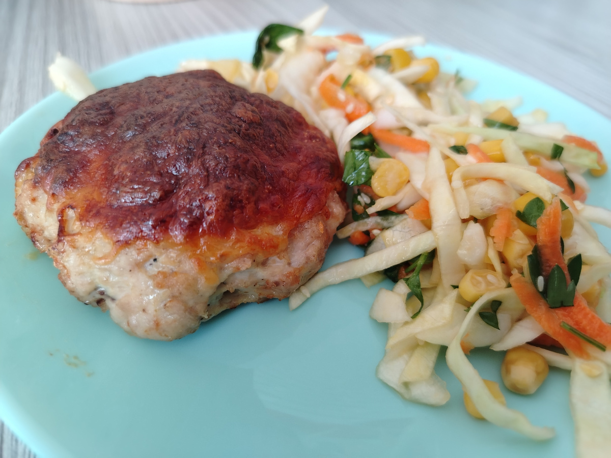 Каждый шарик обваляйте в муке и слепите котлеты и сделайте в центре каждой углубление для начинки.