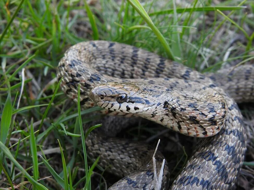 - Степная гадюка (ядовита, серо-коричневая с зигзагообразным узором).