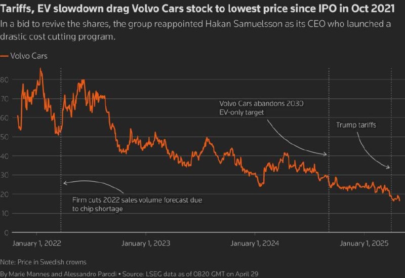 Volvo Cars отозвала прогноз, будет сокращать расходы из-за пошлин Трампа