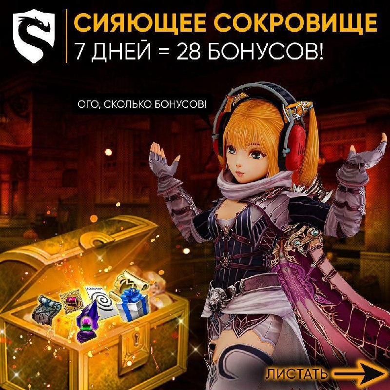 📦 7 дней = 28 бонусов Вместе с апом стадии мы завезли Сияющие Сундуки на Скрайд Х. Это специальный бокс, открыв который, ты сможешь получить ряд полезных предметов и расходников, которые намного облегчат твою игру или старт. Всего сундуков 7 штук, каждый из которых содержит определенные предметы и сундук на следующий день. Открыв сундук первого дня ты гарантированно получишь все предметы в списке + сундук следующего дня, который можно будет открыть спустя 24 часа после того, как был открыт сундук первого дня и так далее. Его нельзя передать. Совсем. Вот никому и никогда. Список предметов представлен на фотокарточках. 📜 Подробнее о Сияющих Сундуках ⭐️ Заказать Сияющий Сундук
