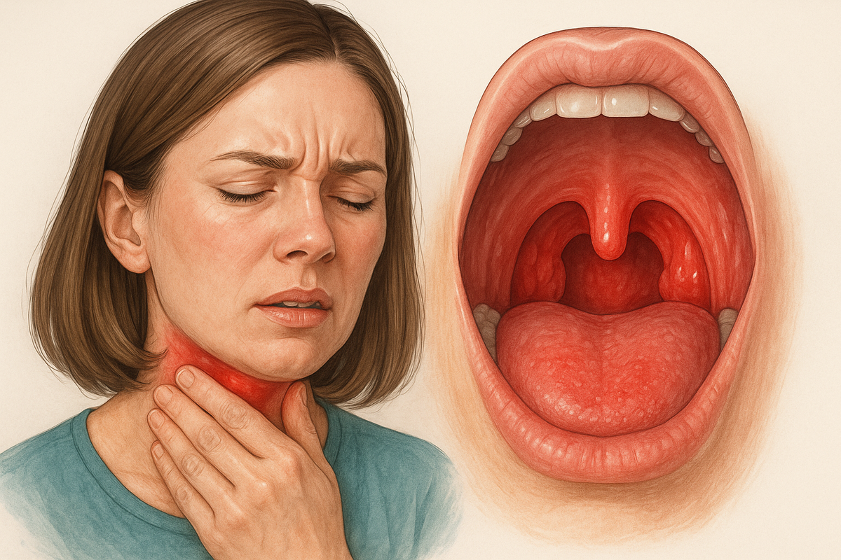 Фарингит — это воспаление слизистой оболочки глотки. Болезнь может протекать остро или хронически. Фарингит — одно из самых частых заболеваний ЛОР-органов, особенно в холодное время года. Пациенты жалуются на боль, першение, сухость и ком в горле при глотании. Несмотря на то, что фарингит кажется безобидным, он может вызвать дискомфорт и осложнения, если не лечить его вовремя. Чаще всего острый фарингит вызывают вирусы. Вирусы гриппа, парагриппа, риновирусы, коронавирусы и аденовирусы распространяются воздушно-капельным путём и раздражают слизистую глотки. Фарингит часто сопровождает ОРВИ и грипп. Бактериальный фарингит встречается реже, но протекает тяжелее. Обычно его вызывают стрептококки, особенно Streptococcus pyogenes. Без лечения бактериальный фарингит может привести к ангине, отиту, синуситу и даже ревматизму. Хронический фарингит развивается постепенно из-за длительного воздействия раздражителей. Это могут быть курение, алкоголь, загрязнённый воздух, химические вещества или пы
