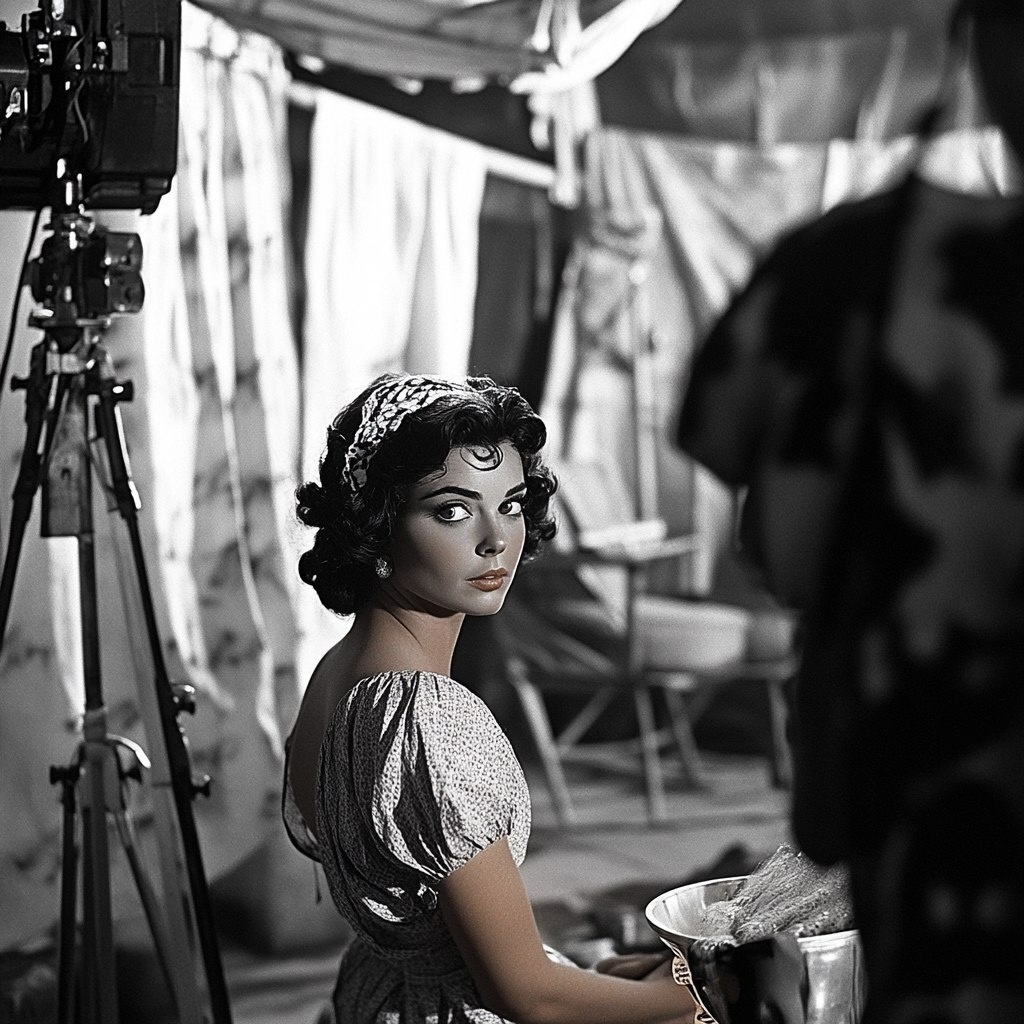 Создано на основе запроса: una immagine di liz Taylor sul set di un suo film