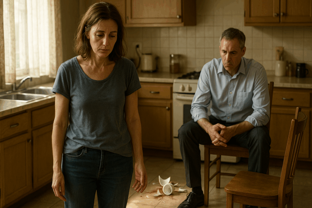 Мария выронила чашку, когда снова услышала знакомую интонацию. Даже не слова — их Андрей уже давно не произносил вслух. Просто взгляд и едва заметный выдох, в котором читалось привычное «ты опять всё испортила». Фарфоровые осколки разлетелись по кухонному полу — точно как её жизнь за пятнадцать лет брака.