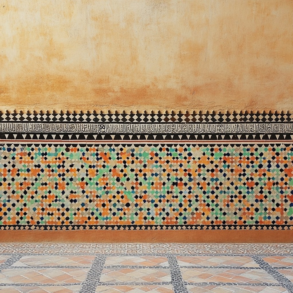 Создано на основе запроса: terracotta wall, in Morocco, empty courtyard, Moroccan tiles, close up