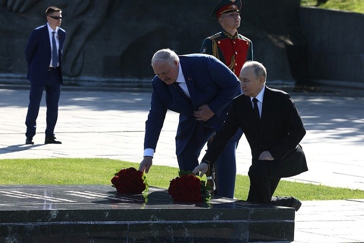 Главы России и Беларуси совместно посетили Мамаев курган днем 29 апреля в рамках визита в город-герой Волгоград. Как сообщает ИА «Высота 102», Владимир Путин и Александр Лукашенко возложили венки к Вечному огню в зале Воинской славы. Также, по сообщению пресс-службы Кремля, руководители двух стран посетили на Главной высоте России могилу маршала, дважды Героя Советского Союза Василия Чуйкова, где возложили цветы. После посещения Мамаева кургана Путин и Лукашенко отправятся в ЦКЗ Волгограда, где выступят на пленарном заседании международного форума «Великое наследие – общее будущее», которое стартовало в 11.00 по московскому времени. Президенты также планируют провести отдельную двустороннюю встречу. А глава российского государства планирует встретиться и с губернатором региона Андреем Бочаровым. Фото, видео: Kremlin.ru