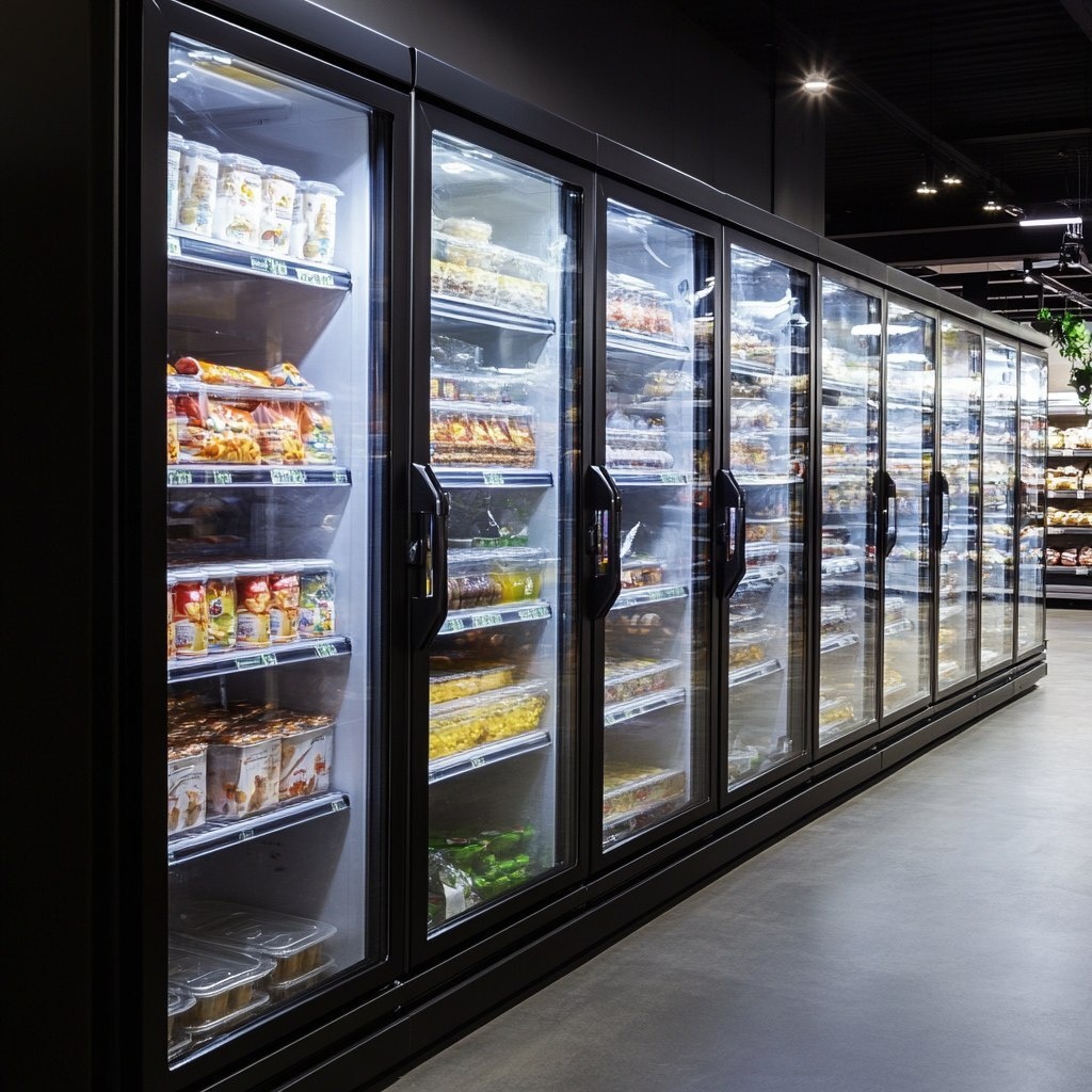 Создано на основе запроса: freezer cabinet on a food retailer shop floor