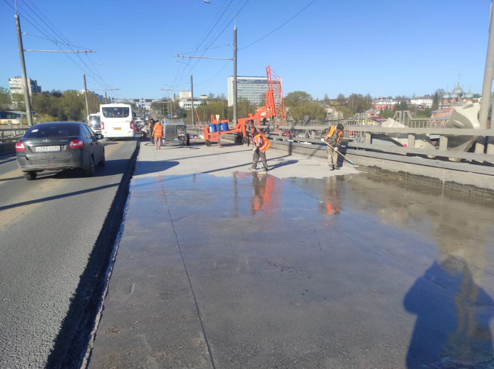 На других участках наносится гидроизоляция. Сотрудники подрядной организации «Автобан-мост» обработали бетон пескоструйным аппаратом на 170-ти квадратных метрах, влагозащитное покрытие нанесли на участок в 400 квадратных метров. Это 70% от плана.