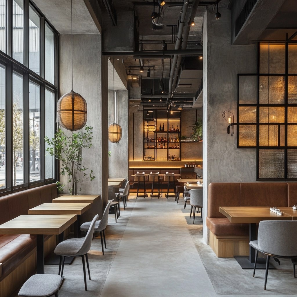 Создано на основе запроса: The interior design of the restaurant is simple with a variety of seats. --- Автоперевод: Дизайн интерьера ресторана прост с разнообразными местами. Как тебе такая картинка? 🤔 https://dzen.ru/id/65c0c65c86e4f837c27b24d7 #ИИ #AI #нейросеть #midjourney #art