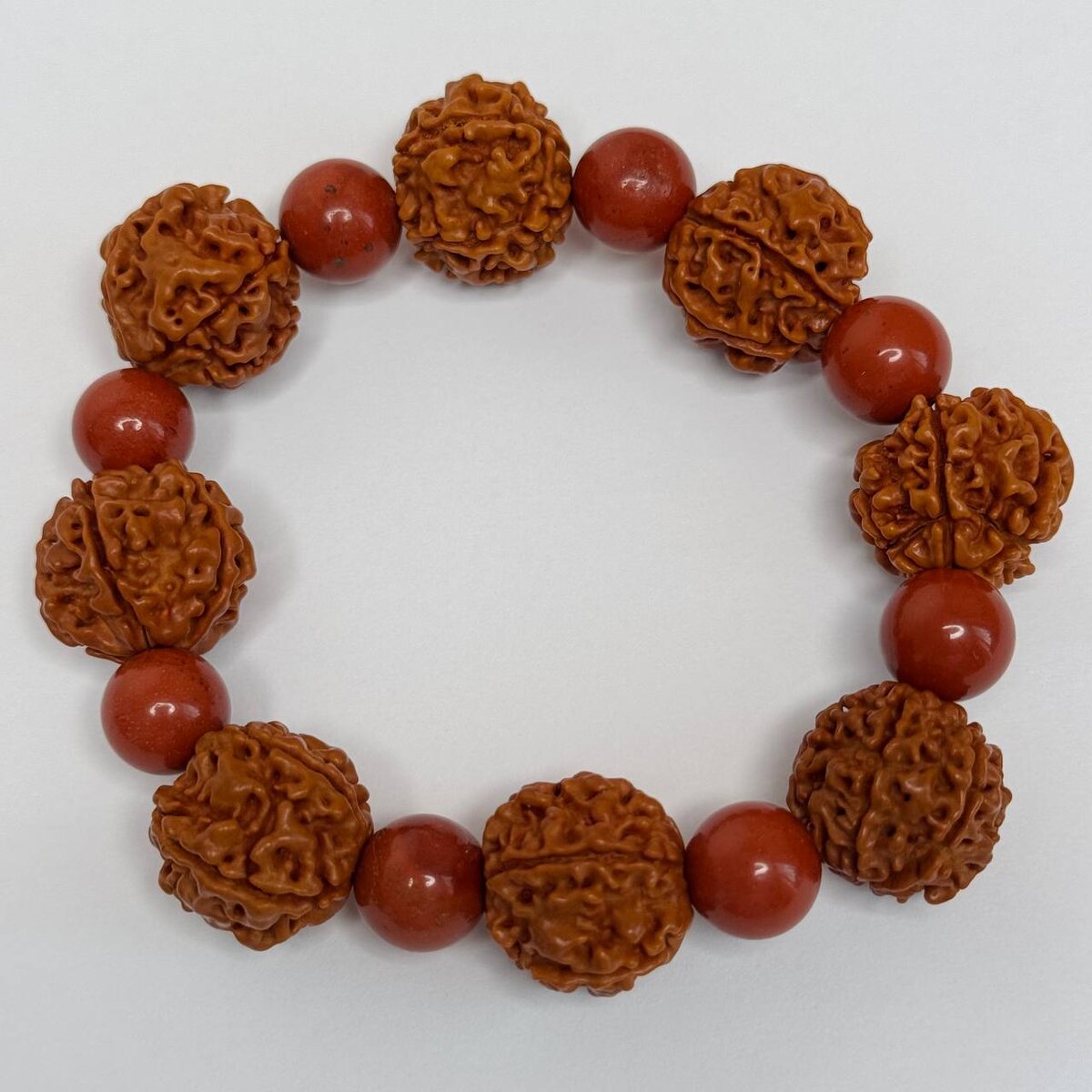 Браслет из рудракши и красной яшмы