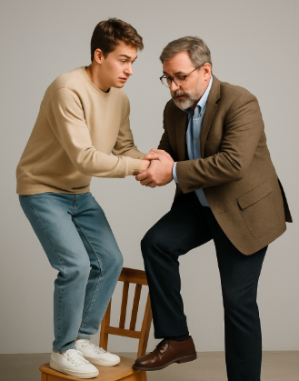 В одном городе жил мудрый наставник, славившийся своим умением воспитывать сильных духом учеников. Однажды к нему пришёл новый юноша — упрямый, горячий, уверенный в своей неуязвимости. — Ты хочешь научиться побеждать? — спросил наставник. — Конечно! — выпрямился юноша. — Тогда встань на этот стул и помоги мне подняться на него. Юноша ухмыльнулся — задание казалось простым. Он вскочил на стул, подал руку учителю и попытался поднять его на стул. Но чем сильнее он тянул, тем явственнее чувствовал, что это невозможно. — У меня не получается! — наконец признался он, покраснев от напряжения. Наставник молча резко дёрнул вниз. Юноша грохнулся на пол, ошеломлённый. — Вот теперь ты понял? — спросил старик, глядя на него сверху. — Что?! Что я должен понять?! — вскричал юноша, потирая ушибленный бок. — Тот, кто помогает другим, всегда держит их за руку. И если ученик не хочет подниматься — он легко может стащить наставника вниз. Юноша замолчал. — Доброта без осторожности — это слабость, — продол