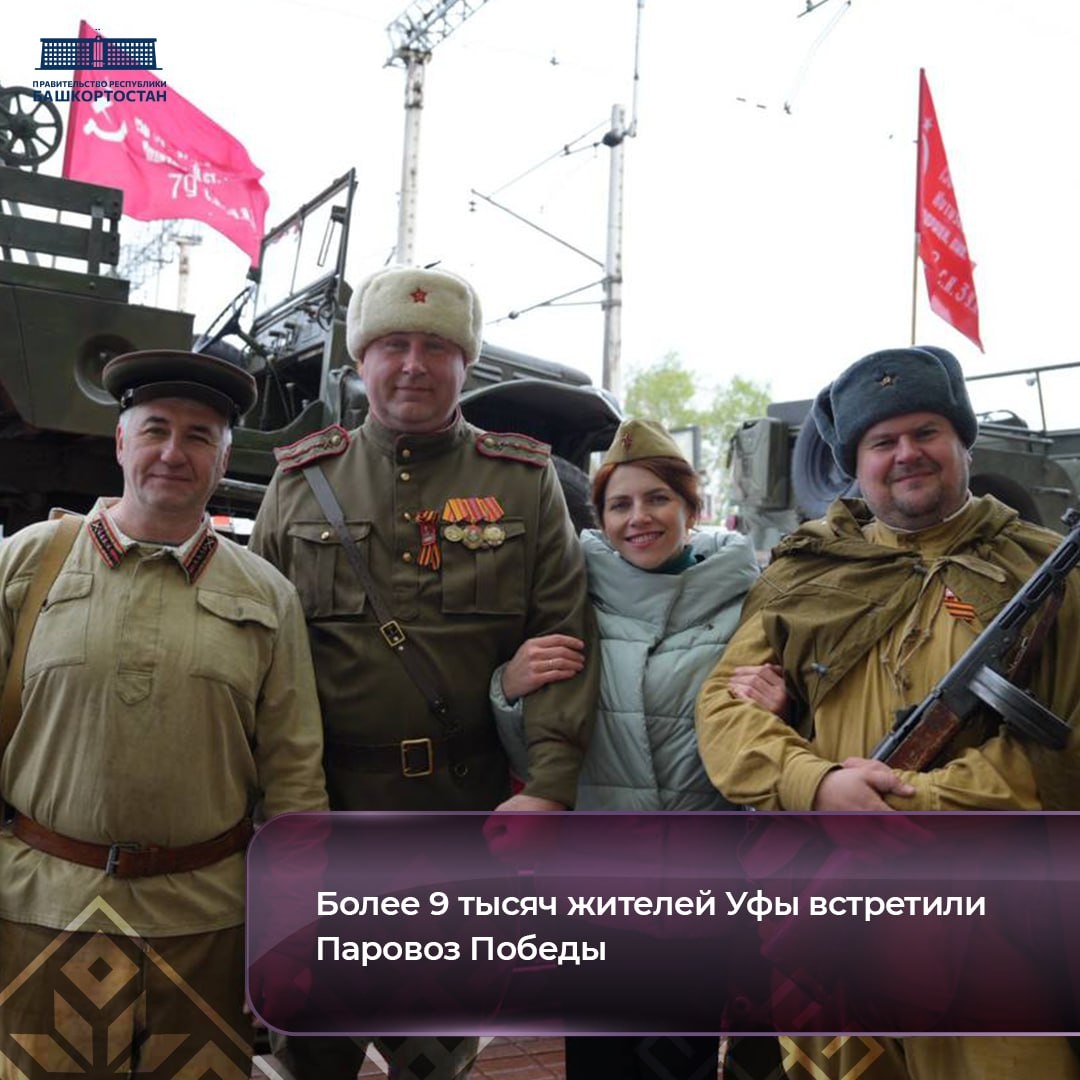 Более 9 тысяч жителей Уфы встретили Паровоз Победы 🚂 Ретро-поезд курсирует по всей стране. 29 апреля Паровоз Победы прибыл на родину героя России Минигали Шаймуратова — столицу Республики Башкортостан. ⭐ Встретить поезд пришли тысячи жителей и гостей столицы Башкортостана — школьники, студенты, ветераны, железнодорожники, семьи с детьми. Люди с интересом осматривали экспозицию, фотографировались на фоне легендарного локомотива и экспонатов времен Великой Отечественной войны. В Уфе ретро-состав пробыл до 12:30 часов и отправился в Стерлитамак. — Проект Куйбышевской железной дороги — уникальный и значимый. Главная его цель — патриотическое воспитание молодежи. Все мы прекрасно понимаем, что в условиях, когда в мире пытаются исказить нашу историю, и появляются течения неонацизма, такие проекты как Паровоз Победы особенно актуальны, — сказал заместитель Премьер-министра Правительства Республики Башкортостан Рустем Газизов.