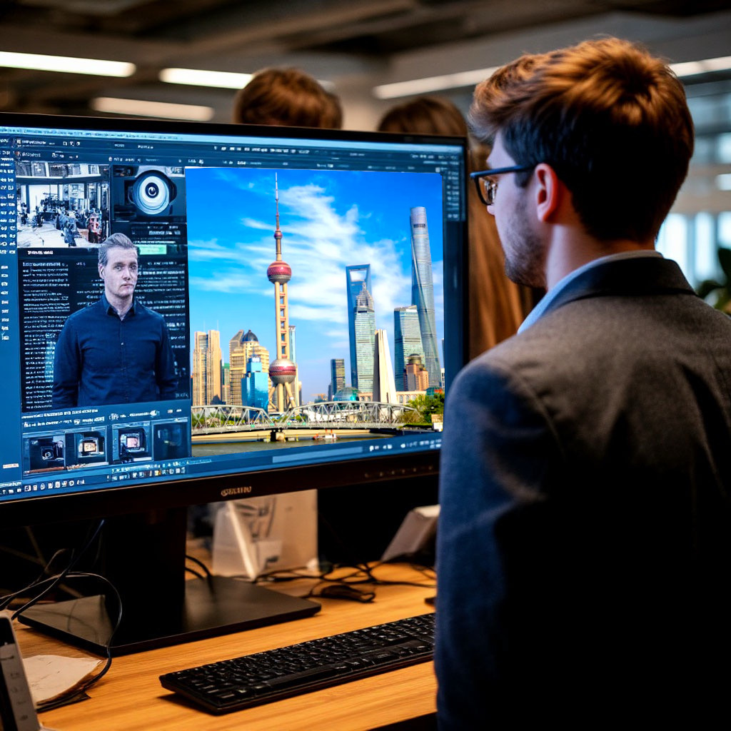 Через полчаса их зовут в комнату с огромным экраном и кучей мониторов. Кто не знает: Шанхай — город под колпаком. Тысячи камер. Всё под контролем.