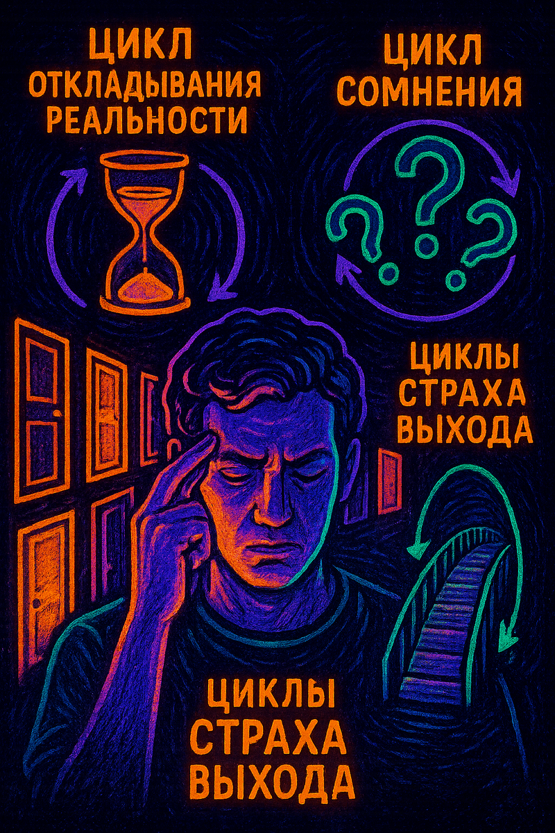 И каждый раз когда вам кажется что вы вышли - это на самом деле лишь новый виток цикла. Оно будет продолжаться столько, пока вы не осознаете этого.