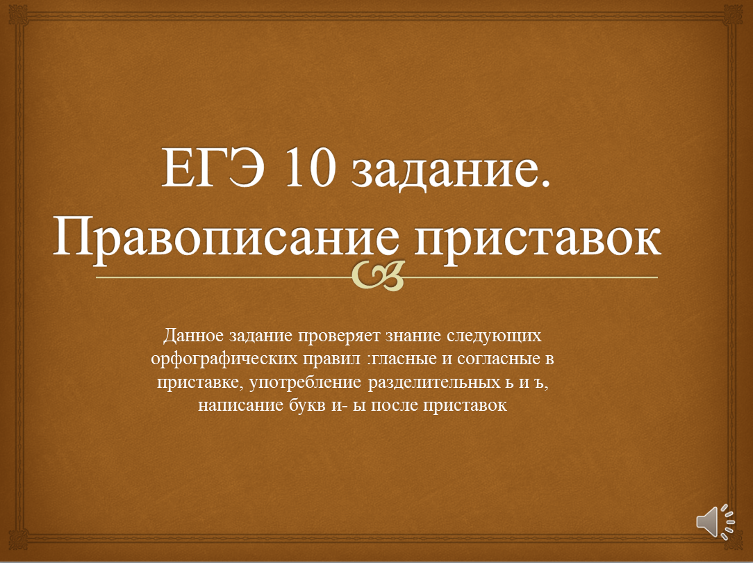 ДЛЯ ПРАВИЛЬНОГО ВЫПОЛНЕНИЯ ЗАДАНИЙ ДАННОГО ТИПА НЕОБХОДИМО ЗНАТЬ СЛЕДУЮЩИЕ ОРФОГРАФИЧЕСКИЕ ПРАВИЛА: 1.Правописание неизменяемых приставок; 2.Правописание А и О в приставках РАЗ-/РАС- и РОЗ-/РОС-; 3.Правописание изменяемых приставок, оканчивающихся на -З и -С; 4.Правописание приставок ПРЕ- и ПРИ-; 5.Правописание И- Ы после приставок; 6.Правописание разделительных Ъ и Ь знаков. Обратить внимание: 1.Приставка ПРА- встречается в словах, имеющих значение «первоначальный, исконный, древний»: прАбабушка, прАязык, прАродина, прАотцы (но: ПРОобраз). 2.АдЪютант, подЬячий, фелдъегерь, конЪюнктура,конЪюнктивит! 3. Не путайте приставку НИС- НИЗ и НЕ+С: НИЗвергнуть – НИСходящий( корень –ход-), неСделанный, (не+ сделанный – приставки з- не бывает ) и т. Д. неСгибаемый, неСговорчивый, неЗдешний( не+Здесь –данное слово запоминаем). 4.Иноязычные приставки ДИС- и ДИЗ- пишутся с буквой С перед любыми согласными, а с буквой З – перед гласными или Ъ: дисгармония, дисбактериоз, деЗинфекция, диЗъюнкция. Обра