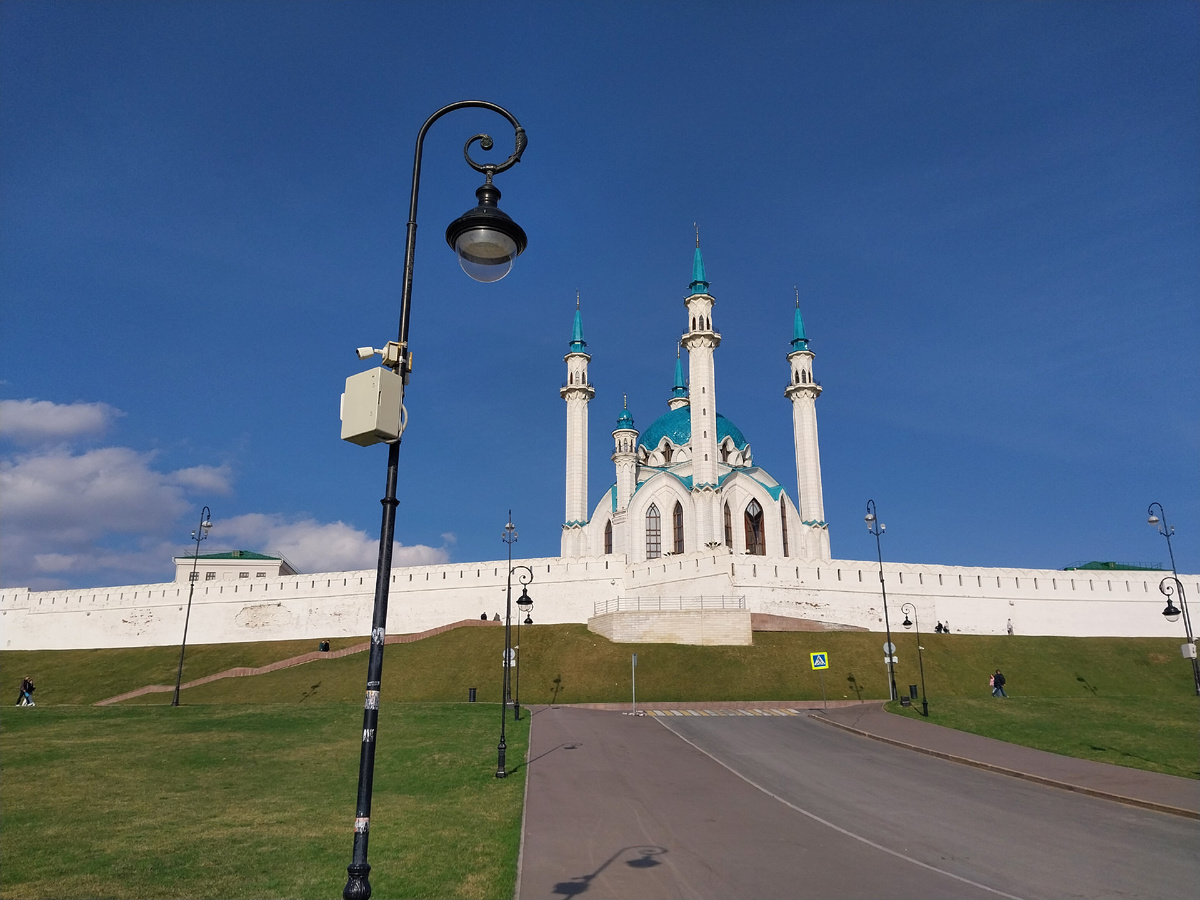 Поднимаясь в гору, мы увидели за мощными стенами Кремля белую красавицу Кул-Шариф. Невозможно посетить знаменитый комплекс и не поздороваться с этой красавицей. Что мы знаем о ней интересного? 1. Мечеть Кул-Шариф занимает 19 тысяч квадратных метров. Высота главного минарета достигает 57 метров. 2. Мечеть открыли не так давно — 24 июня 2005 года к 1000-летию Казани. 3. В главном зале мечети хранятся особые книги, в которых вписаны фамилии тех, кто пожертвовали деньги на строительство Кул-Шариф. В том же зале бережно хранятся подарочные издания Корана на разных языках мира. 4. Мечеть Кул-Шариф начали возводить в 1996 году, а закончили в 2005. 5. Мечеть способна вместить в себя около 1500 человек, а на площади разместятся около 10000 человек. 6. Архитектура Кул-Шариф во многом повторяет разрушенную соборную мечеть Аль-Кабир, которая находилась в городе Булгар ещё в 13 веке. 7. У мечети насчитывается 5 этажей. Вестибюль главного входа располагается недалеко от помещений имама, молельно