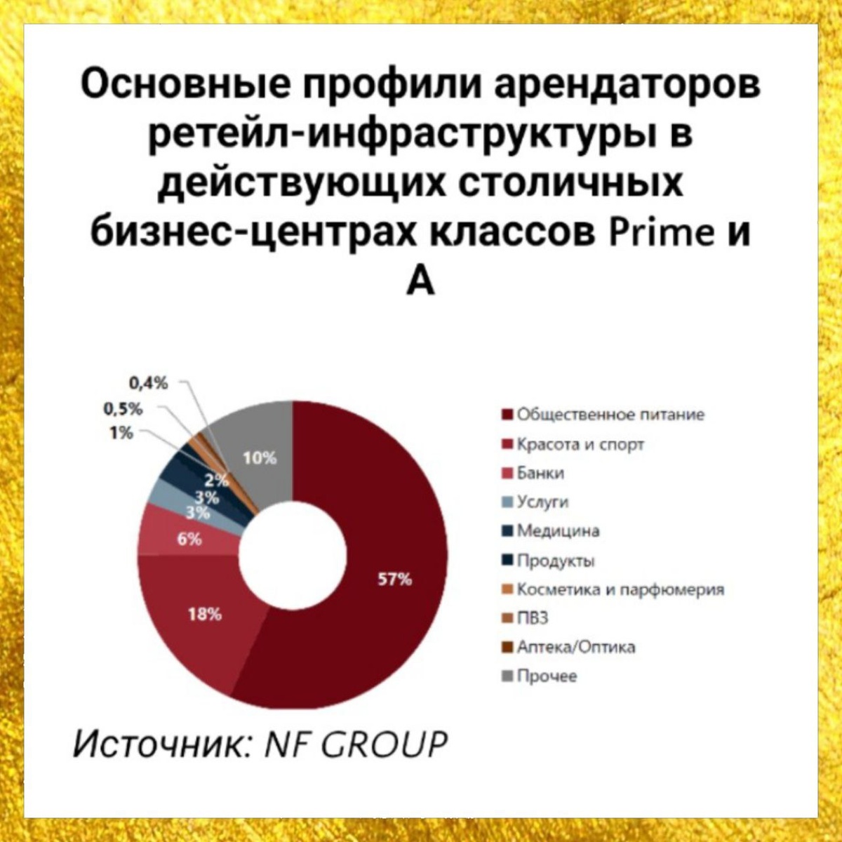 ☕ Офисы захватила торговля и сервис 📈 В новых бизнес-центрах классов Prime и А доля торговых площадей выросла в 2,5 раза по сравнению с уже существующими объектами. По свежим данным NF GROUP и девелопера STONE, инфраструктурный ретейл занимает уже 10% площадей в строящихся БЦ против 4% в действующих. 🍽️ Половину всех новых открытий в офисных центрах за 2024 год составили точки питания – рестораны, столовые и кофейни. Причём ни одна кофейня за отчётный период не закрылась, что говорит о стабильном спросе. Девелоперы увеличивают долю коммерческих площадей в новых проектах. 💰 Арендные ставки на помещения под ретейл в БЦ варьируются от 35 000 до 159 000 ₽/м²/год (включая НДС), при средневзвешенной ставке 67 010 ₽/м²/год. Эти цифры сопоставимы, а иногда и превышают ставки в ключевых торговых коридорах Москвы. ⏱️ Темпы заполнения торговых площадей в бизнес-центрах ускоряются. Если раньше в первые два года после строительства пустовало около 85% помещений, то теперь уже в первый год по