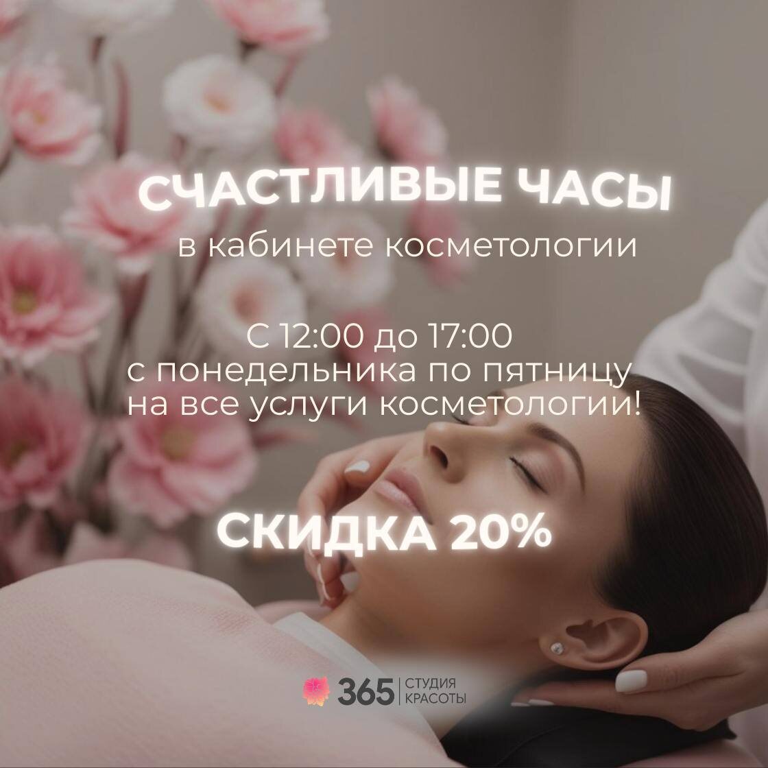 Забери свою порцию красоты и ухода этой весной ✨ 🔠🔠🔠🔠🔠🔠2⃣0⃣💕❗ Счастливые часы в кабинете косметологии! С 12:00 до 17:00 с понедельника по пятницу на все услуги косметологии! С заботой о вас 365 дней в году ❤️ Записаться можно любым удобным способом: 👉🏻 Сообщение в Whats'app https://wa.me/79663654477 👉🏻По телефону +79663654477 👉🏻Онлайн запись https://n286444.yclients.com/