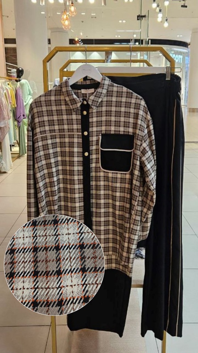 ▫️Рубашка в клетку с акцентной полочкой, карманом и золотыми пуговицами