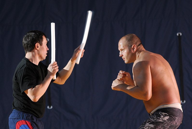Упражнение "реакция на сигнал" помогает развить мгновенное принятие решений. В лагерях подготовки UFC, таких как American Kickboxing Academy, бойцы используют метод, где тренер даёт звуковой или визуальный сигнал, на который нужно немедленно отреагировать. Например, тренер хлопает в ладоши, и боец должен выполнить заранее оговорённый приём — бросок, удар или уклонение. Для разнообразия можно использовать цветные карточки: тренер поднимает красную карточку, что означает прямой удар, или синюю, что требует лоу-кика. Постепенно интервалы между сигналами сокращаются, заставляя бойца реагировать быстрее. Этот метод улучшает способность мозга обрабатывать информацию под давлением, что особенно важно в хаотичных боевых ситуациях.