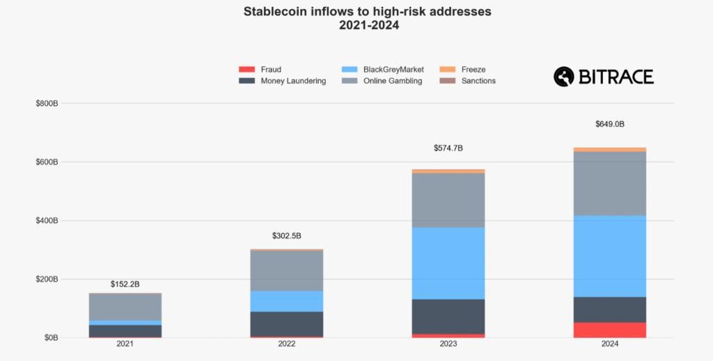 Объем переводов криптопреступников на «опасные» адреса достиг $649 млрд